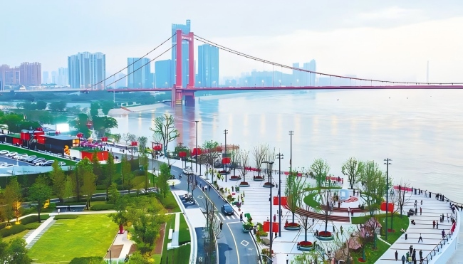 Wuhan Baili Yangtze 토토 랜드 생태 복도는 완전히 연결되어 있습니다 2 개의 강과 4 개의 은행을 연결하여 아름다운 3 개 도시를 보여줍니다 가장 아름다운 강경은 Jiangcheng_hubei, China