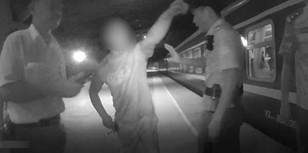 Li는 얼굴을 덮고 그가 구금 될 것이라는 사실을 알게 된 후 울었다. 이 기사의 모든 사진은 Wuhan Railway Public Security에서 제공합니다
