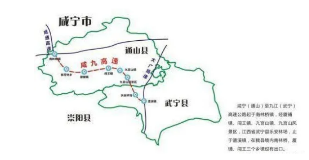 이 프로젝트는 Tongshan 카운티 Nanlinqiao 타운에서 시작하여 Xiapu Town, Chuangwang Town, Jiugongshan Scenic Area, Jiugongshan Scenic Area, Wuning 카운티의 Le'an Forest Farm을 통과합니다.