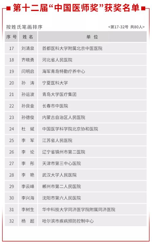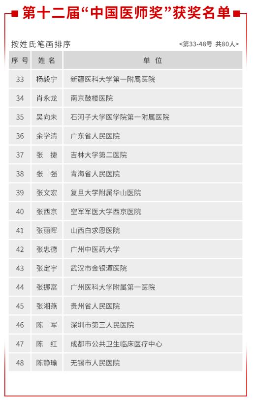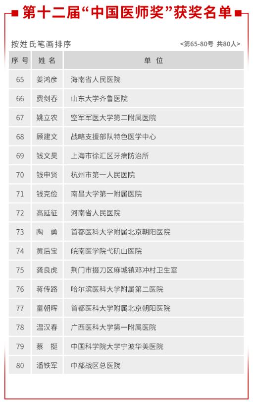 12 번째 "중국 의사 상"의 전체 목록 :