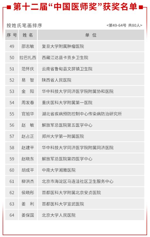 중국 의료 협회의 직원에 따르면 올해의 "China Physician Award"의 선발 기준은 전염병과의 싸움에서 경험이있는 의사들에게 편향되어 있습니다. 80 명의 수상자 중 대부분은 후베이 또는 지역의 전염병과의 싸움에 참여했습니다.