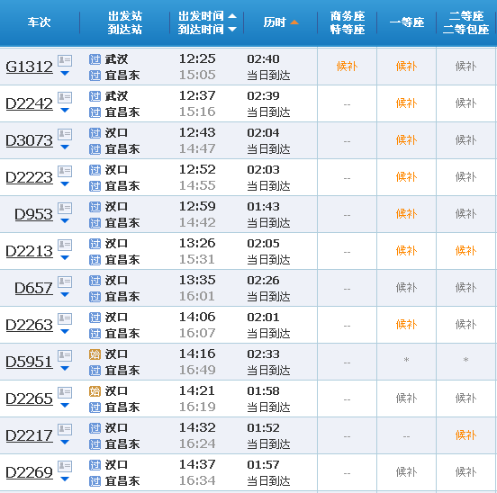 Wuhan을 Yichang으로 데려가는 예를 들어, 1st에는 Wuhan의 3 개의 주요 역에서 고속 철도 및 고속 열차를 포함하여 Direct Express (Z-Header) 및 Fast Train (K-Header)을 포함하여 68 개의 열차가있었습니다. 그러나 23:26에 우가에서 출발하는 K532 기차를 제외하고, 단단한 좌석 토토 꽁 머니이 있으며, 다른 모든 열차에는 남은 토토 꽁 머니이 없습니다.
