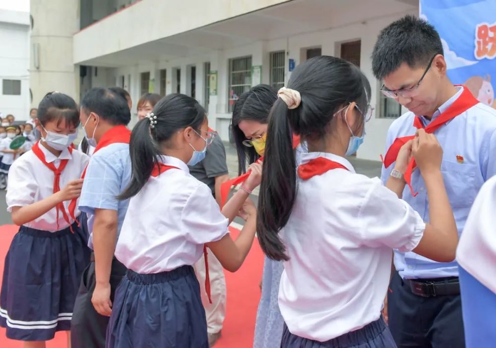 아이들은 손님에게 붉은 스카프를 제시하여 감사를 표명했습니다